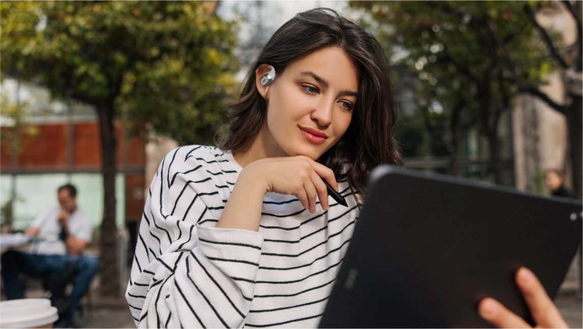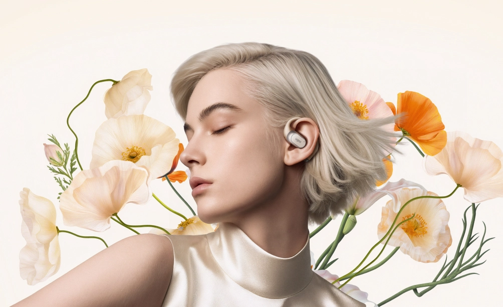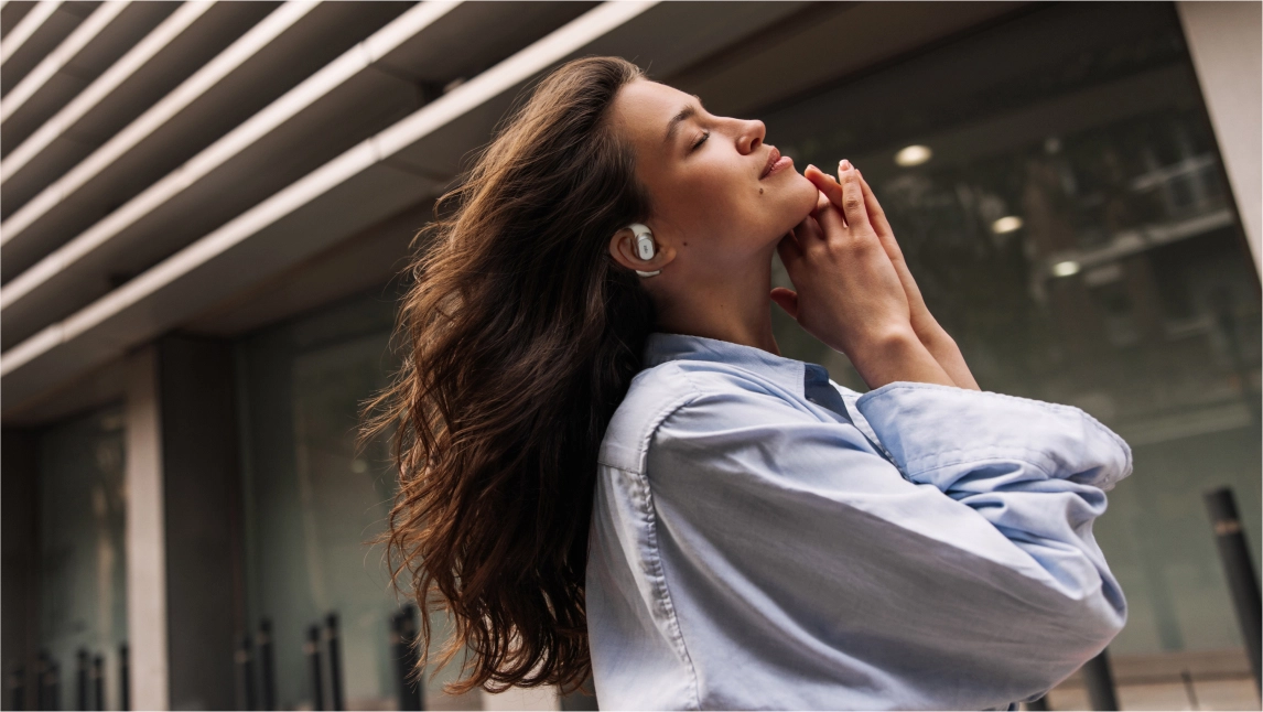 轻盈的材质贴合耳型,就像一片轻软的云温柔环抱耳朵。